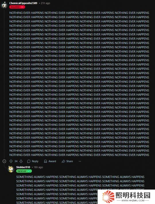 事實上,這整件事進一步加劇了“懷疑者”和“堅信者”之間的對立。我能找到的幾乎每個帖子都展現了這兩個陣營之間近乎神話般的沖突;一位“末日預言者”在另一個帖子中寫道:“一有機會就要懷疑。” 而代表著人類不屈精神的人回應道:“絕不。” 下面是這種沖突更激烈的一種表現形式。