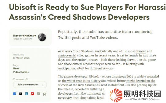 育碧新作《刺客信條:影》即將上線,游戲現已開啟預載。而面臨可能到來的輿論壓力,育碧計劃推出「反騷擾計劃」以保護員工。有團隊成員表示自己自游戲公布以來已遭受無數次網絡攻擊,而且曾被建議不要在社交媒體上展示出在育碧工作,以免受到騷擾。