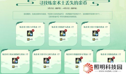 同樣在3月25日維護后至4月22日維護前,“尋找煉金術師丟失的金幣”活動開啟,英雄們完成主線RAID戰役,可獲得“丟失的金幣”,金幣可以在兌換商店兌換獎勵。