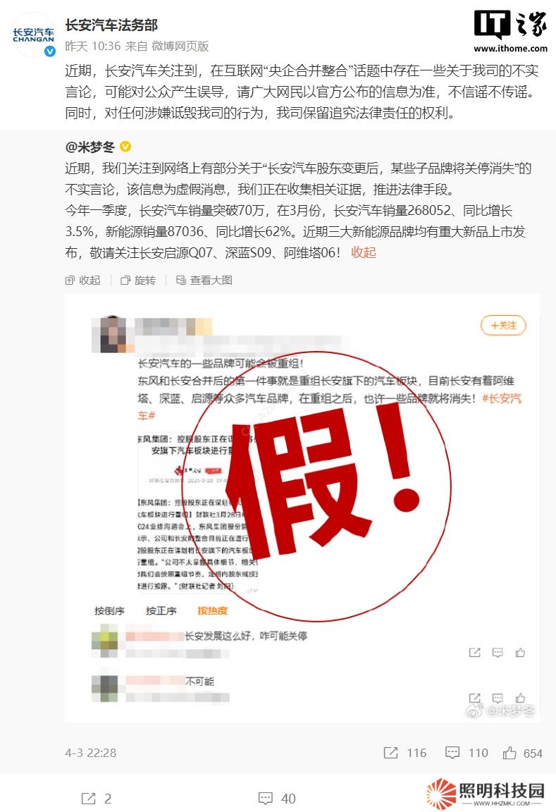 本站注意到,長安汽車法務部已開通官方微博,并在昨日發布首條消息: