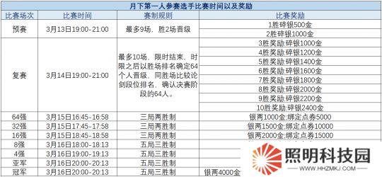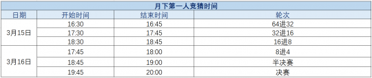 (4)在16強比賽結束后,后續的月下第一人比賽將不再給選手分檔,并且也不再隨機匹配對手,而是根據選手16強對陣表按照正常的線性晉級規則決定8強以及后續的對陣表。