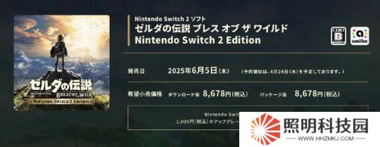 擁有《塞爾達傳說:曠野之息/王國之淚》Switch1版的玩家,無需重購游戲,可選擇花費1000日元(約合人民幣49元)升級至Switch2版。