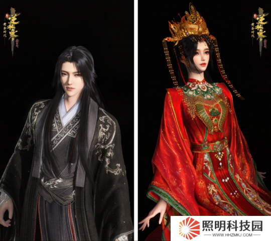 聯動時裝【司玄鎮天】與【曦鳳嘉煌】,一款暗紋玄衣,一款火紅婚服,直接讓大家秒回劇中王林殺去云天宗“搶婚”的名場面。男款玄色長袍穩重大氣,壓迫感十足,女款嫁衣艷麗如火,珠翠寶石更顯華麗高貴。男女號換上時裝站在一起時宿命感打滿全屏,哪個雙廚能忍得住啊,這不得嗑生嗑死,高喊一句“帶勁”。