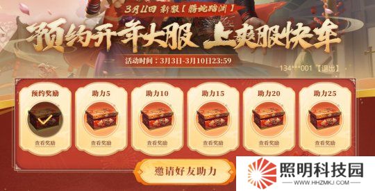 邀請(qǐng)微信好友助力,當(dāng)助力人數(shù)達(dá)到 5、10、15、20、25 人時(shí),就能解鎖對(duì)應(yīng)助力禮包。最高可獲洗髓伐脈丹*20、靈氣丹*20、名俠簡(jiǎn)錄*5 ,每天最多能邀請(qǐng) 5 名好友!獎(jiǎng)勵(lì)在江湖接引使處領(lǐng)。