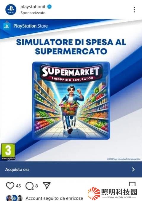 PlayStation意大利官方Instagram頁面發(fā)布了一則動(dòng)態(tài),宣傳一款名為《超市購(gòu)物模擬器》的游戲。正如你所見,圖片中不管是人物動(dòng)作還是畫風(fēng),都不禁讓人懷疑這是AI生成的圖片。
