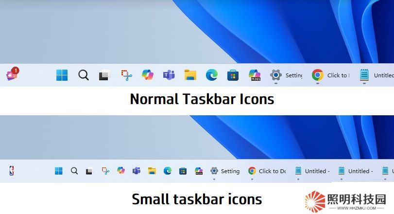 從不:如果用戶不希望圖標(biāo)改變大小,可以選擇此選項(xiàng)。這將恢復(fù)當(dāng)前 / 舊的系統(tǒng)行為,對(duì)于那些不喜歡小任務(wù)欄圖標(biāo)的用戶來說,可能會(huì)是更合適的選擇。需要明確的是,只有圖標(biāo)大小會(huì)發(fā)生變化,任務(wù)欄的寬度保持不變。