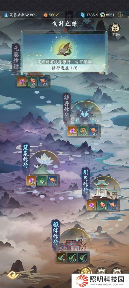 第一就是刷圖,《踏風行》是一款修仙放置游戲,云游時即可自動獲取修為,以及各種修仙資源,而地圖推進越深,云游獲取獎勵就越高,比如我們通關洛風州時,云游獲得修為的效率是每小時600點,而通關流火州時,修為獲得的效率高達每小時2760點!
