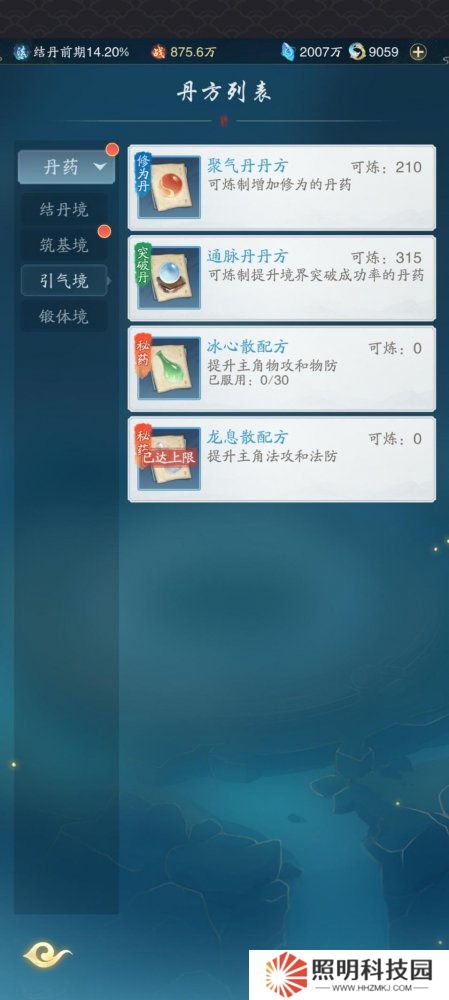此外,丹藥也不是無腦亂吃的,每天服用丹藥的次數有限制,所以為了最大化提升修為,引氣境——聚氣丹、筑基境——凈心丹、結丹境——續脈丹,要服用當前等階最高的丹藥,另外通脈丹、凝神丹、引氣丹也是如此,品階越高提升的成功率越高,可以避免突破失敗浪費時間。