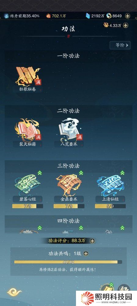而且功法層數高了后,還可以激活功法共鳴,額外增加屬性,所以我們要盡可能多地獲得功法數量,然后通過提升功法層數,來提升功法的屬性。