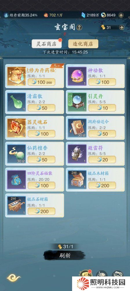 商店購買:靈石商店、造化商店等購買打折丹藥、強化石、突破石等。