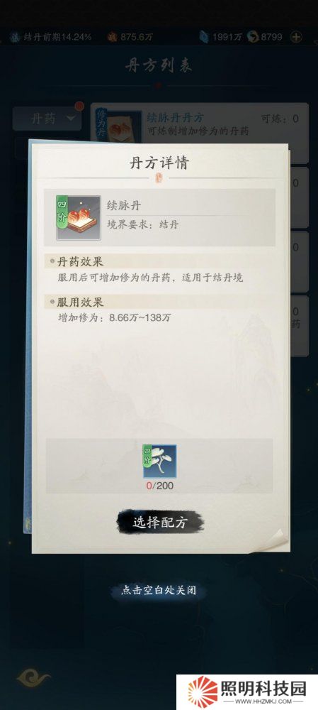 以結丹期為例,最重要的兩個丹藥就是提升修為的續脈丹,以及增加境界突破成功率的引靈丹,但需要注意的是,丹藥煉制成丹分為不同的等階,分別為凡品,珍品,靈品,極品和絕品,等階更高的丹藥,藥效更好,凡品續脈丹只增加8.66萬的修為,而絕品的可增加138(+8.31)萬修為。
