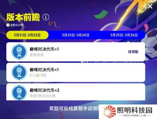 在【版本前瞻 限時贈禮】活動期間,玩家在規定時間內登錄游戲并完成對應任務,最多可在結算期獲得【巔峰對決代幣*12】!