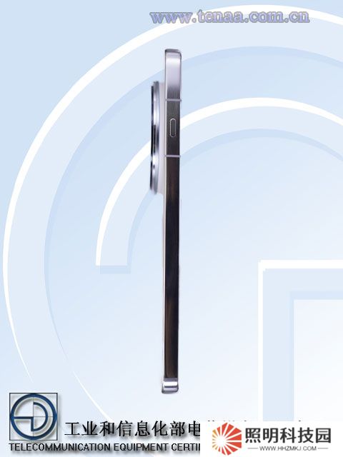 入網機型采用了白色配色,機身背面采用居中大圓相機模組。除了常規的音量鍵以外,新機另一側還配備一個按鈕,預計將帶來更多的功能。