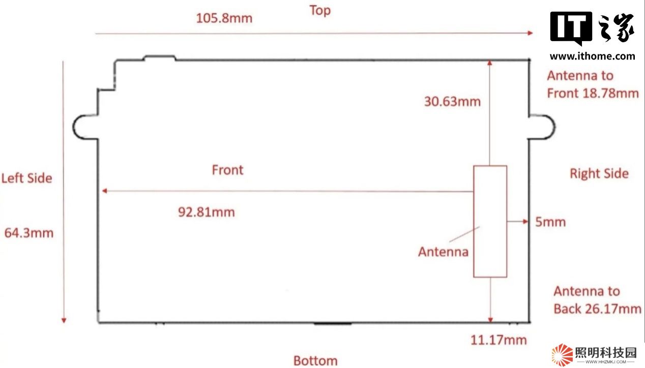 根據該認證文件顯示,其型號為 FF240003,中國制造,尺寸為 105.8mm*64.3mm,比富士 X-M5 相機(111.9*66.6)小;同時根據其尺寸圖,該相機將搭載一個 EVF 取景器。