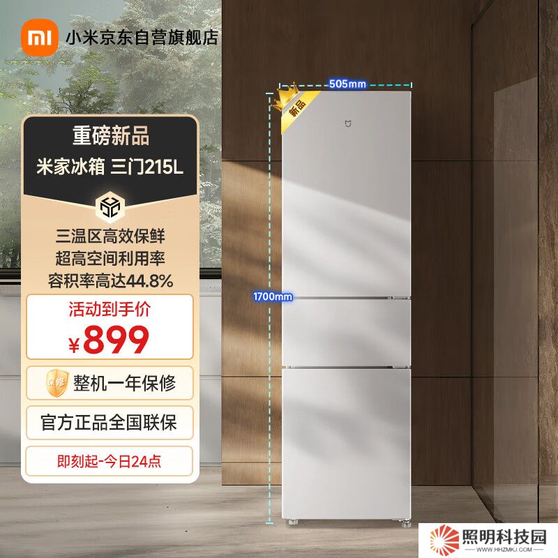 本站 4 月 7 日消息,小米米家冰箱三門 215L 今日在京東等平臺上市,支持三溫區高效保鮮,售價 899 元。