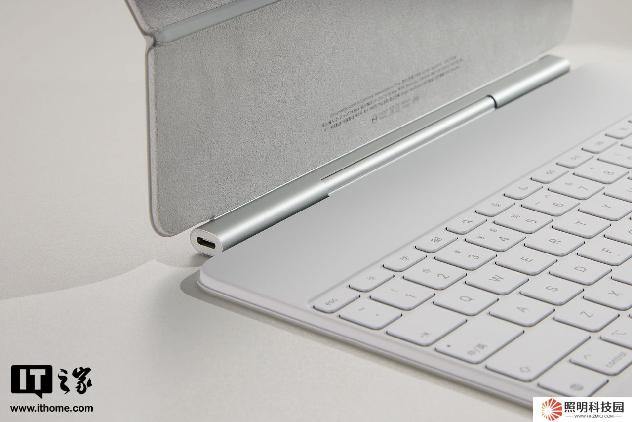 首先我們可以看到 iPad Air 的妙控鍵盤是白色,整體設計上和初代 iPad Pro 的妙控鍵盤比較相似,A 面、C 面和 D 面都是硅膠材質,手感上更加細膩親膚,而當前最新的 iPad Pro 的妙控鍵盤 C 面是鋁合金材質,這是它們最大的區別。