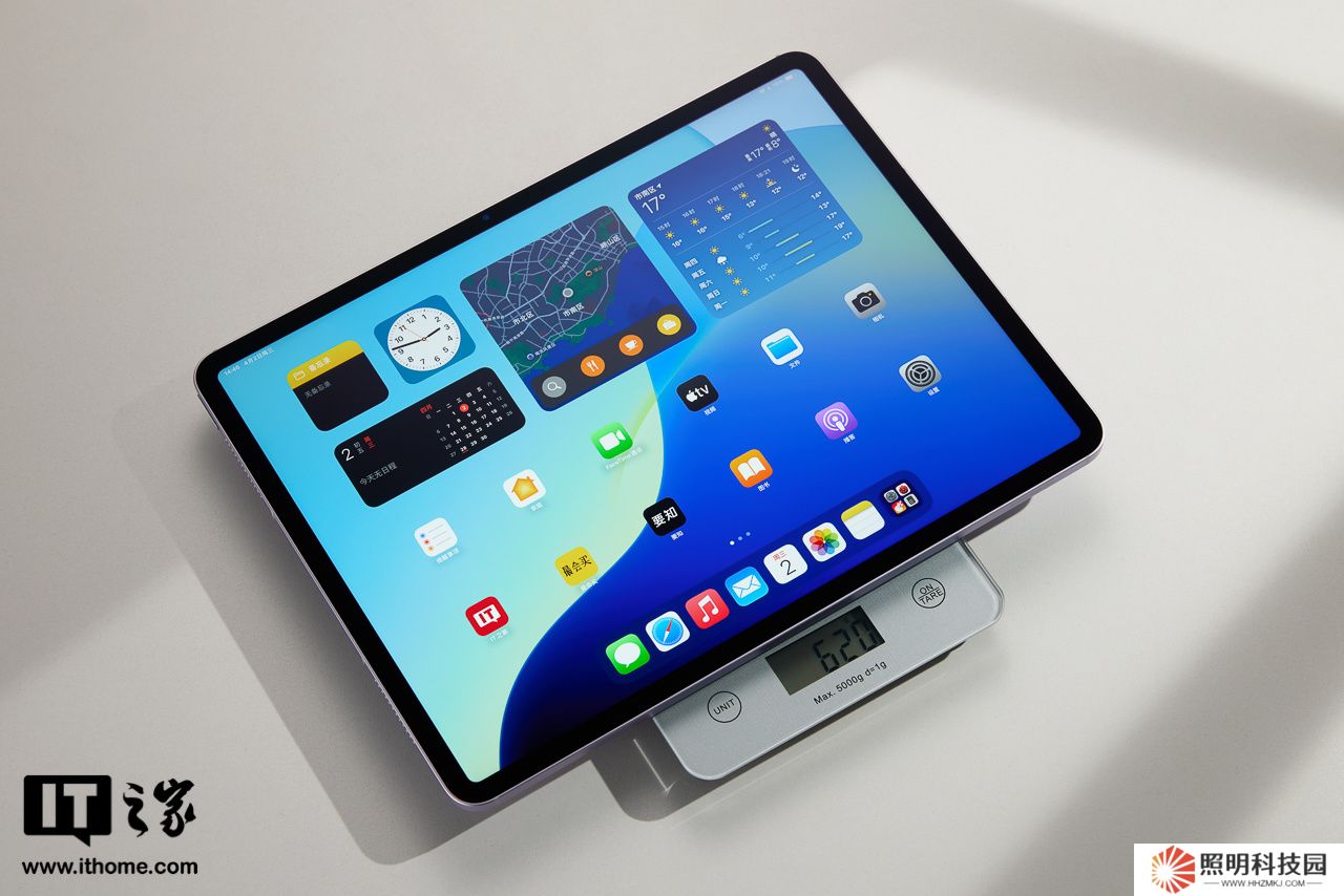 尺寸方面,全新 iPad Air 13 英寸機身長度為 278mm,寬度為 212mm,厚度則為 6.2mm 重量 620g,整體相比上一代略輕一些,但也很有限。