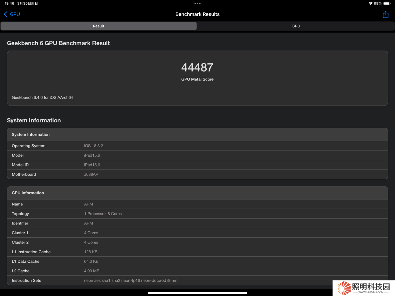 小編也用《GeekBench 6》進行了 GPU 的跑分,這款 M3 芯片的 GPU 得分為 44487 分。