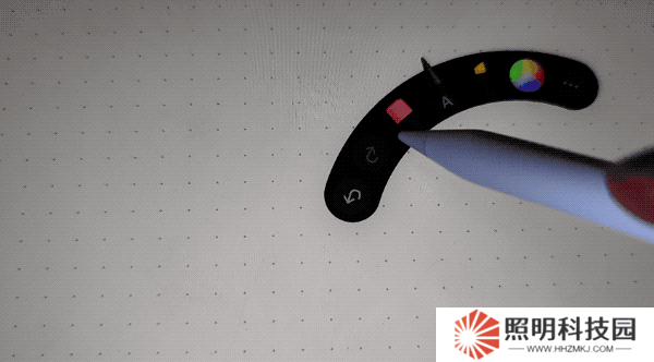 同時你還可以輕捏筆身,打開工具盤快速切換工具以及線條粗細和筆畫的顏色,非常方便。