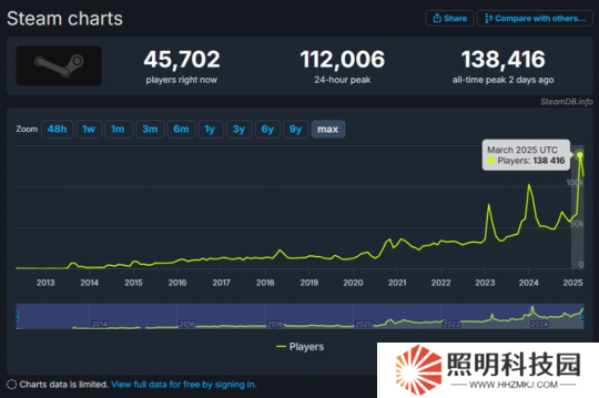 每當一款多人合作獨立游戲爆火時,《Spacewar!》的在線玩家數都會迎來飆升。不過,對于這種情況V社并未進行處理。