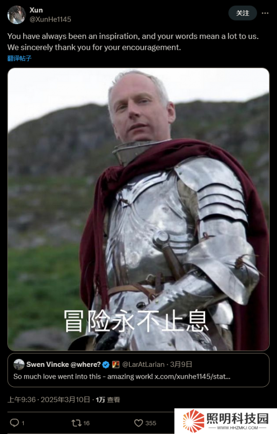 這樣的誠意也感動了 Vincke。在社交媒體上,Vincke 表達了自己的認可,寫道:“它投入了非常多的愛——做的很棒!”