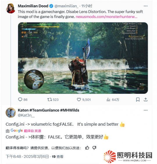推主@maximilian_分享了一款MOD,可關閉《怪物獵人:荒野》中的鏡頭失真(Lens Distortion)效果,讓游戲畫面更清晰。推主表示禁用后“超級怪異的柔和圖像終于消失了”,這表明原有的鏡頭失真效果可能讓畫面顯得模糊或不舒適。