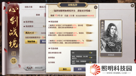 在挑戰前,少俠還可以選擇對應的挑戰詞綴進行挑戰,從容迎戰亦或迎難而上皆隨你心!選擇不同詞綴將增加本次挑戰的難度,加大考驗少俠操作與團隊配合的同時,也將帶來豐富的回報,增加通關后帶來的分值和通關后的獎勵!