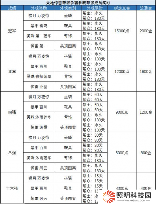 (2)“天地驚雷幫派爭霸賽”參賽幫派的成員可以獲得如下獎勵: