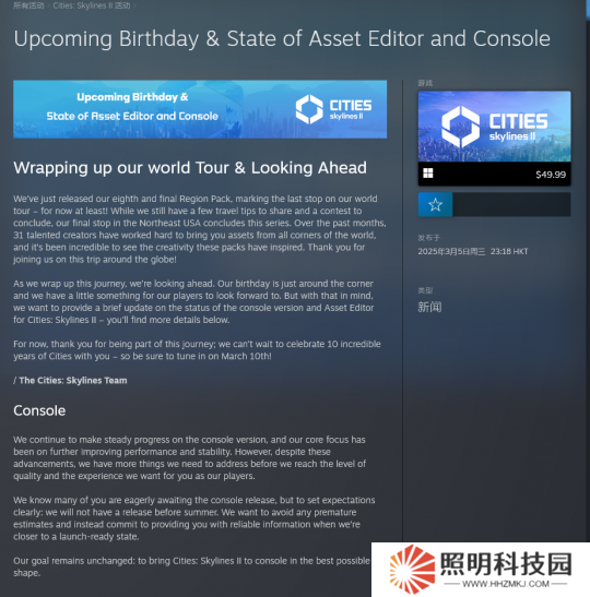 在系列 10 周年紀(jì)念日之際的開(kāi)發(fā)者更新中,發(fā)行商 Paradox Interactive 透露,《城市:天際線2》的 Xbox Series 和 PS5 主機(jī)版本還要等上一段時(shí)間。