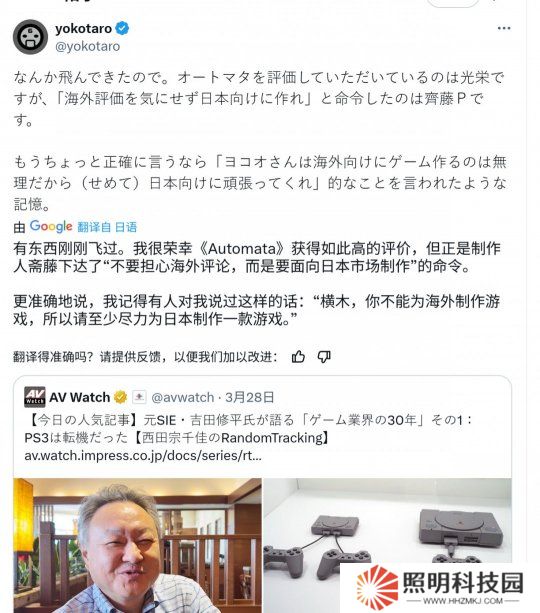 要是說得更準確一點,我記得他說的是類似于“橫尾さん你做海外向的游戲根本不行,所以(至少)給我好好做日本向的吧”這樣的話。”