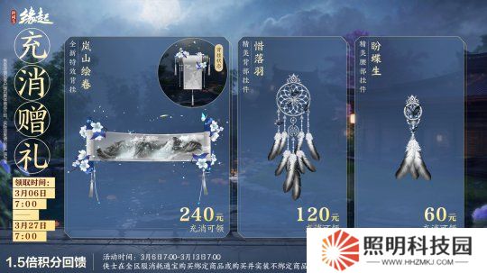 云邊孤鴻意歸思,天外春山滿夕嵐。3月6日7:00-3月27日7:00,俠士累計充值消費達(dá)指定額度,即可領(lǐng)取對應(yīng)檔位的精美掛件贈禮!腰部掛件「盼蝶生」蝶翼綴珠宛若停駐腰間,背部掛件「惜落羽」墨羽垂絳層疊如屏。三檔更有特效背部掛件「嵐山繪卷」,展開畫卷可見玉軸流轉(zhuǎn)華光,水墨繪就遠(yuǎn)山飛瀑,繁花搖曳引彩蝶停棲,動靜之間盡顯東方意境。