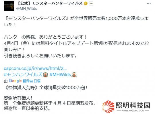 今日,卡普空宣布《怪物獵人:荒野》的全球銷量,已經(jīng)達到了1000萬份。而截至2024年12月31日,《怪物獵人》系列總銷量也已達到1.08億份。