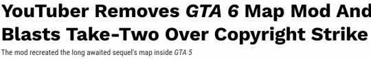 ·作者吐槽T2沒有發(fā)出提前警告,就直接連同油管下架了宣傳視頻,表示如果提前警告自己就會主動取消發(fā)布,稱自己已經(jīng)放棄了,但不排除其他高玩繼續(xù)做。