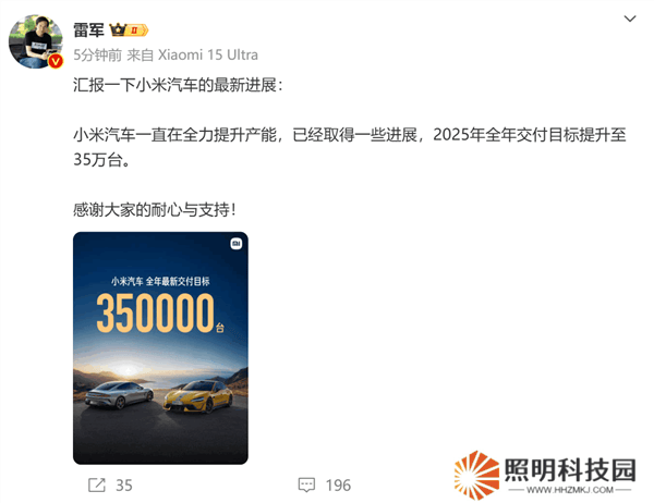 這一積極進展的消息,緊隨小米創(chuàng)始人雷軍于上月18日的官方聲明。雷軍透露,小米汽車團隊一直在不遺余力地提升產能,并取得了顯著成效,因此決定將2025年的全年交付目標上調至35萬臺。這一調整,相較于之前設定的30萬輛目標,增加了5萬輛。