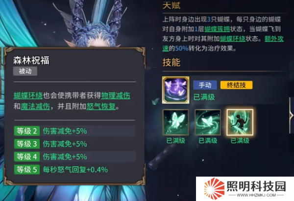 而她的被動技能“輕柔蝶翼”和“森林祝福”更是錦上添花?!拜p柔蝶翼”每2秒會有50%的概率幫助隊友驅散負面狀態,而“森林祝?!眲t會賦予隊友物理和魔法雙重減傷效果,還能讓攜帶“蝴蝶環繞”的單位快速恢復怒氣,這也讓塔露拉成為隊伍中的一個怒氣加油站和狀態清除器。