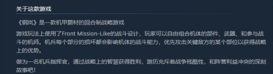 在Steam《鋼嵐》頁面中官方還直接提到了SE的《2089?邊境》,表示該游戲有類似于《2089?邊境》的戰斗系統。現在BlackJack Studio對此還沒有任何回應。
