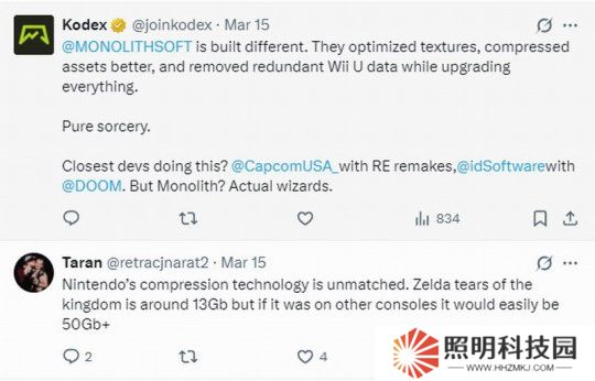評論區有人表示:“Monolithsoft可能刪除了不需要的代碼和資產,簡化了加載過程,并使用了新的壓縮方法。”“優化和壓縮顯然是一門失傳的藝術”“現在的游戲動輒就是100GB以上,希望他們能跟任天堂學學。”“任天堂的壓縮技術是無與倫比的,《塞爾達傳說:王國之淚》容量為13GB,如果在其他主機上,則很容易達到50GB以上。”