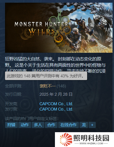 不過,因為優化問題以及流程太短,《怪物獵人:荒野》的首日評價不佳。截止到目前,僅有43%的好評率。所幸作為一款將保持長期更新勢頭的游戲,未來卡普空依舊有提升品質的空間。本作的首個更新,現已確定將于4月份上線。