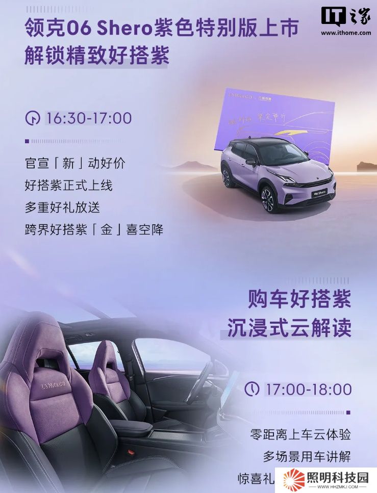 根據(jù)規(guī)劃,領(lǐng)克 06 Shero 紫色特別版汽車將在 16:30-17:00 官宣價格。