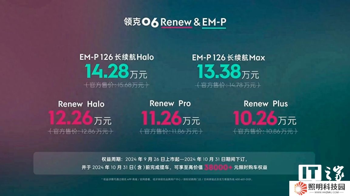 新款領(lǐng)克 06 家族于 2024 年 9 月上市,包括搭載 1.5T 汽油發(fā)動機的領(lǐng)克 06 Renew,共有三種配置,官方指導(dǎo)價為 10.86 萬元至 12.86 萬元;以及搭載 1.5 升插電混合動力系統(tǒng)的領(lǐng)克 06 EM-P,共有兩種配置,官方指導(dǎo)價分別為 14.78 萬元和 15.68 萬元。