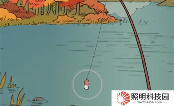 2、然后操控角色前往河邊,點擊魚鉤就能夠開始進行釣魚。