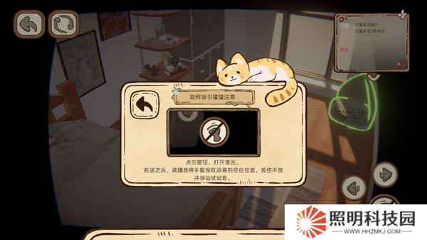 3、然后玩家們就能夠通過打開激光來吸引房間里面的貓咪,中間的輪盤可以控制激光進(jìn)行移動(dòng)。