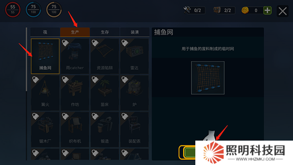 5、工藝菜單,設置【捕魚網】獲取食物。
