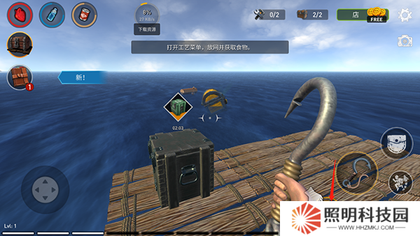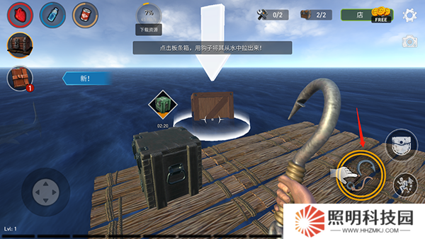 4、海上遇到物資,使用【鉤子】將其從水中拉出來。