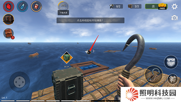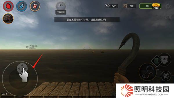 2、你將能夠操控角色在木筏和水中移動,使用【操縱桿】控制。
