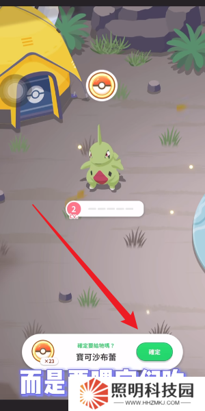 3、當你完成了睡眠的檢測之后,就能夠在自己的島嶼上遇到寶可夢,這個時候點擊寶可夢并在下方點擊確認來喂食布蕾。