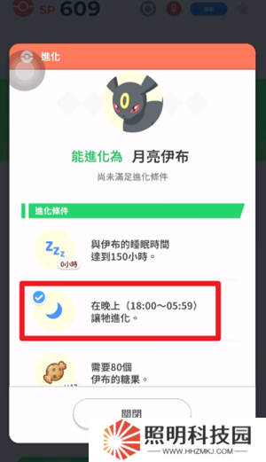 4、其中還會存在著一些特殊的條件,比如月亮伊布就必須在晚上才能夠進化。