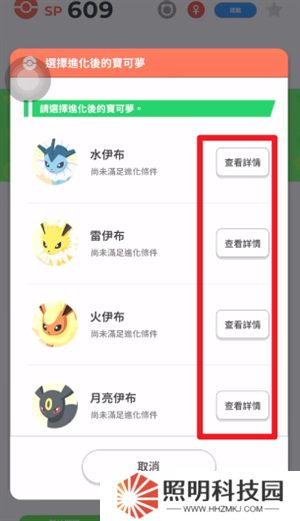 3、點擊對應的進化形態右側的查看詳情,你將能夠看到進化的條件。