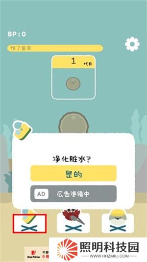 3.點(diǎn)擊下圖紅色框框凈化水源,你需要確保水是干凈的,因?yàn)槿绻K會(huì)不利于魚(yú)的成長(zhǎng)。