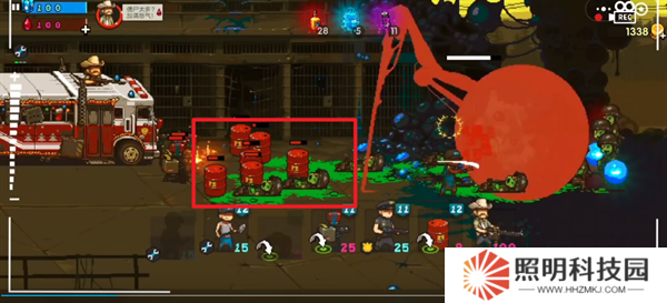 2、油桶刷新的時候,繼續在后續的僵尸面前放置油桶。